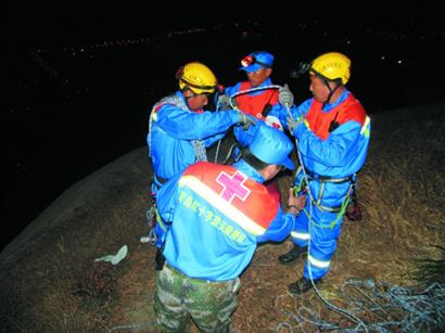 為保萬無一失,老甄首先試降,當老甄安全下到崖底時,救援出現(xiàn)意外,因為山間風(fēng)力過大,繩索被吹得偏離原位,還在半山腰的老紀已無法抓到繩索。藍天救援隊的李隊長在山頂放下一根50米長的繩索,帶著另外一根救援繩索降到被困的杰森身邊。他用扁帶將虛弱的杰森和老紀固定在一起,用攜帶的這根救援繩將兩人索降到了崖底。此時已經(jīng)是凌晨零時21分,消防隊員讓出一件大衣給杰森穿上保暖,在山崖下接應(yīng)的救援隊員老孫拿出了壓縮餅干和礦泉水,杰森一陣狼吞虎咽后終于恢復(fù)了一些體力,并不停地豎起大拇指,向救援人員表示感謝。昨天凌晨1時左右,杰森被救援人員安全帶到山下,民警將他帶到麥島派出所吃飯梳洗后,將他送回住處。(記者 黃飛 通訊員 劉海青)