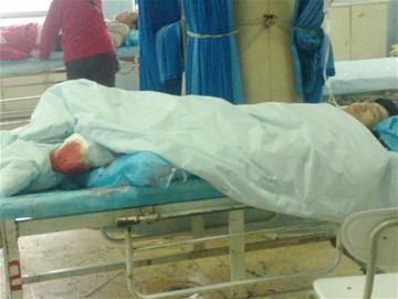 ????記者聞?dòng)嵹s到醫(yī)院時(shí),一名20多歲的年輕人臉色煞白地躺在病床上,已經(jīng)疼暈過去,一節(jié)斷腿就放在他的身旁,斷腿上纏著厚厚的紗布,鮮血已經(jīng)將紗布浸透染紅。朋友小李陪在一旁。