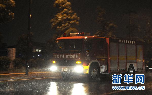 5月20日,救援車從富士康集團(tuán)鴻富錦成都公司拋光車間爆炸事故現(xiàn)場(chǎng)駛過(guò)。新華社記者李橋橋攝