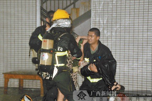 下午3時30分許,欽州下起了暴雨,增加了救援難度。不過,消防員冒著大雨,繼續(xù)進行救援工作。他們從樓中共救出47名被困人員,其中4人已經(jīng)昏迷。