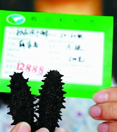 青島一品牌海參店今年剛上市的極品海參每斤售價(jià)12888元。