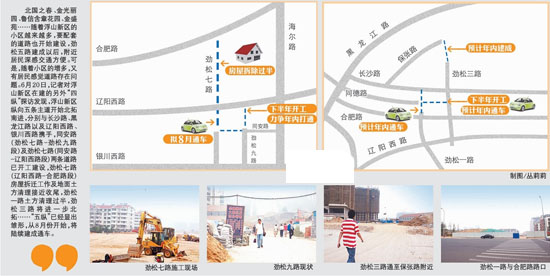 ????市民張女士家住高科園北側(cè)北國之春小區(qū),她經(jīng)常要到直線距離大概500米的朋友家去,她朋友家在遼陽西路。由于門口通往遼陽西路的道路還沒開通,她每次不得不繞行海爾路。