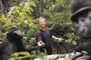 英國攝影師大衛(wèi)·斯萊特日前在印尼蘇拉威西島北部的一個國家公園內(nèi)旅行,在那里遇到了一群珍稀的黑冠獼猴。這些感到好奇的動物圍著斯萊特留下的相機跳來跳去。