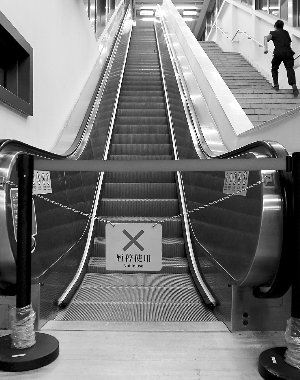 昨天,深圳出事的電梯已暫停使用。7月10日晚,該市地鐵4號線清湖站發(fā)生扶梯故障致多人受傷。溫慶強 攝