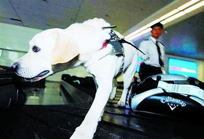 昨天在青島機(jī)場檢驗檢疫局檢疫犬基地,“考官”擺下了30只皮箱,嗅覺靈敏度是人的1萬倍以上的 “京京 “輕盈地奔到第一排皮箱前,不出20秒鐘,在第二排第6只黑皮箱前就一屁股坐在地上,得意地看著訓(xùn)導(dǎo)員。訓(xùn)導(dǎo)員打開箱子,里面裝著香蕉、魷魚、奶酪等“禁攜品”,訓(xùn)導(dǎo)員趕緊從口袋里掏出一小塊法國皇家狗糧“獎勵”給“京京”。輪到“西西”出場,它的工作效率更高,在規(guī)定的60秒時間內(nèi),竟找出9只“目標(biāo)箱”。 “西西“喜歡得到的獎勵是訓(xùn)導(dǎo)員陪它一塊兒 “瘋跑”。雖然“西西“體型小,但與人親和力強,不會主動騷擾乘客。