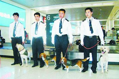 青島機(jī)場檢驗檢疫局現(xiàn)有4只現(xiàn)役檢疫犬和2只退役犬以及4名訓(xùn)導(dǎo)員。其中,退役犬“麥璐”、“艾泊”,是2005年10月1日第一批上崗的檢疫犬。目前,現(xiàn)役的4只檢疫犬分別是“京京”、“歡歡”、 “西西”、“精靈”,是在2008年7月青島奧帆賽期間上崗的。這些拉布拉多犬、比格犬,是國際上檢疫犬常用犬種。