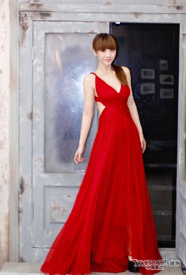 柳巖性感搶鏡 穿超低紅裙難遮傲人雙峰(組圖)