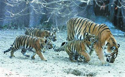 青島動(dòng)物園三胞胎小老虎春節(jié)見客