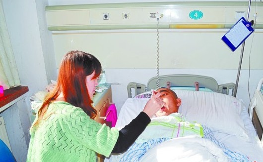 冷瑞雪在醫(yī)院照顧受傷的丈夫。 “去年平安夜,丈夫說好了要回家給我們娘倆做飯,可沒想到,在回家的路上出了車禍……”事情雖然已過去近兩個月,冷瑞雪仍不敢回憶那一幕,“醫(yī)生說他可能會變成植物人,我和家人在他床邊整整喊了7天,丈夫才醒過來。情人節(jié)我什么也不想要,只希望丈夫能夠好起來”。由于傷情嚴重,冷瑞雪的丈夫目前仍然在青醫(yī)附院住院,今年的情人節(jié)也要在病房里度過。 平安夜丈夫突遇車禍 2011年12月24日也就是去年平安夜的下午6時,膠州市民冷瑞雪接到丈夫劉琦打來的電話。“他說晚上他回家做菜,全家熱熱鬧鬧地過一個平安夜?!崩淙鹧┱f,難得丈夫要下廚 ,她心里美得很 ,放下電話,趕緊準備材料,還專門去菜市場買了兩條魚。 “準備好材料后,我和女兒坐在家里等他,沒想到等了半小時,等來了醫(yī)院的電話,說他出車禍了。當我們匆忙趕到醫(yī)院時,醫(yī)生告訴我們他傷到了頭部,腦干有損傷并且很嚴重,渾身多處骨折?!崩淙鹧┱f,她聽到這個消息時差點昏迷過去,“他可是我們家的頂梁柱,是我的精神依靠啊”。隨后,冷瑞雪見到了躺在病床上的丈夫,昔日高大強壯身上到處都是傷,面部已然全非。由于腦部受傷,丈夫仍處于昏迷狀態(tài),望著這個與自己攜手走過6年的人,冷瑞雪心里冷到了極點。 連喊七天,丈夫醒了 膠州人民醫(yī)院的醫(yī)生告訴冷瑞雪,她丈夫劉琦受傷非常嚴重,并且腦干部位受了傷,有可能醒不過來;即使醒過來,也有可能變成植物人。冷瑞雪不敢相信這樣的現(xiàn)實?!澳嵌稳兆?,我以淚洗面,一遍一遍地叫著老公的名字,給他聽歌,說以前我們戀愛時的情話,說女兒出生時的樣子,說我們戀愛時從沒有說過的"我愛你",那段時間我都記不得說了多少次,后來我慢慢地發(fā)現(xiàn)我每次和他說話,丈夫的眼角都濕濕的,我知道他能聽得到,更知道他一定會醒來?!崩淙鹧┱f。 連續(xù)7天,冷瑞雪一直守在丈夫的病床邊,吃不下飯,喝不進水,睡不著覺?!爱敃r覺得時間特別漫長,天一放明就害怕,一天又過去了,丈夫還沒有醒來。”冷瑞雪在丈夫身邊守了7天后,奇跡終于發(fā)生了,2011年12月31日下午,丈夫緩緩地睜開了眼睛?!搬t(yī)生說這是個奇跡,像他這樣的病人,這么快醒過來非常罕見?!?/p> 采訪過程中,冷瑞雪的婆婆還向記者透露了一個細節(jié):那是還在膠州醫(yī)院的時候,劉琦做手術(shù)要輸血,醫(yī)院說血庫告急,沒有那么多O型血?,F(xiàn)在實行了一個互助獻血制度,親人要用血,家人就要去獻。由于他們年齡都過了,醫(yī)院只同意冷瑞雪去?!矮I了四百毫升,血站的醫(yī)生一再告誡她要多喝水,不要陪床了要好好休息,可是那時的小冷根本就顧不上回去休息,當晚就陪的床,早上起來去廁所差點暈倒。” “老婆,你受累了” 重傷醒來的劉琦,面部各器官的功能都沒有恢復(fù),腿上還打著鋼板,吃喝拉撒全在床上。“他的嘴里還有傷口,牙齒是用專門的器具固定著的,只能吃流食,并且不能吃一點咸?!?月7日下午,記者在青醫(yī)附院第一住院部8樓1病房看到冷瑞雪,她正在給丈夫泡餅干,泡好后一點一點喂給丈夫。 劉琦要在青醫(yī)附院住院15天,也就是說,他們今年的情人節(jié),要在床上度過。不過即使在醫(yī)院里,這對患難夫妻身上也能看到感人的愛情?!靶褋淼睦瞎粫f話,但是他會翹起嘴巴親親我,這是愛情。站在青醫(yī)附院8樓陽臺看海上船只,告訴老公今天海上有霧,這也是愛情。只要他活著,有他的地方就是我的天堂。這個情人節(jié),我什么也不想要,就希望丈夫能夠盡快好起來?!?/p> “老婆,你受累了。”面部各器官功能仍未恢復(fù)的劉琦聽著冷瑞雪的訴說,嘴里艱難地擠出這一句話,臉上已經(jīng)全是淚水。目前,冷瑞雪為了給丈夫治病,已經(jīng)花光了家里4萬元的積蓄,還借了16萬元。冷瑞雪告訴記者,丈夫單位在他出事前的兩個月,沒有給他交保險,住院費不能報銷,現(xiàn)在家里經(jīng)濟條件非常困難,但她會想盡辦法幫丈夫治傷。如果有熱心市民愿意對這對感人的年輕夫婦伸出援手,可以撥打當事人的電話15105328396聯(lián)系他們。(記者 肖良華 連茂明 實習(xí)生 李雯鳳) |