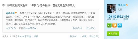 汪小菲隔空回應(yīng) 大S汪小菲婚后備受媒體關(guān)注,兩人也是常在公眾面前秀恩愛,而且大S也常請(qǐng)請(qǐng)公公婆婆吃飯十分孝順。然而大S臺(tái)灣忙主持,汪小菲北京忙事業(yè),兩人相隔兩地任由思念蔓延。今天凌晨大S汪小菲這對(duì)新婚夫妻兩人微博隔空互訴相思。 今天凌晨零時(shí)06分大S發(fā)布微博稱:“我想你??!”不難猜測(cè)遠(yuǎn)在臺(tái)灣的大S一定是想念新婚不久的丈夫汪小菲。五十分鐘后汪小菲也通過微博向大S訴相思,感慨為什么要分開兩地,每天奔波為什么,希望珍惜身邊的愛人。汪小菲首先寫下一段纏綿悱惻的愛情小故事,“ 她做了個(gè)夢(mèng),來到了深山里,看到了一位修行的行者。感覺莫名的熟悉。行者害羞的說:你來了?我等了你好久好久。她想跑過去抱他但又不知所措。他們四目相對(duì),既興奮又傷感。突然她說:我該回去了,回到現(xiàn)在的你的身旁。行者望著她:走吧,他也等了你很久很久!幾輩子的分離換來今天,為什么還要分開兩地?!?/p> 隨后汪小菲轉(zhuǎn)發(fā)自己的微博感慨道:“每天的奔波到底在追求什么呢?珍惜得到的,懂得愛身邊愛你的人?!眱扇宋⒉┗ピV相思令網(wǎng)友們十分感動(dòng),祝福他們一定要好好在一起。截止到今天發(fā)稿前大S的微博被轉(zhuǎn)發(fā)一千三百余次,評(píng)論三千余條。 |