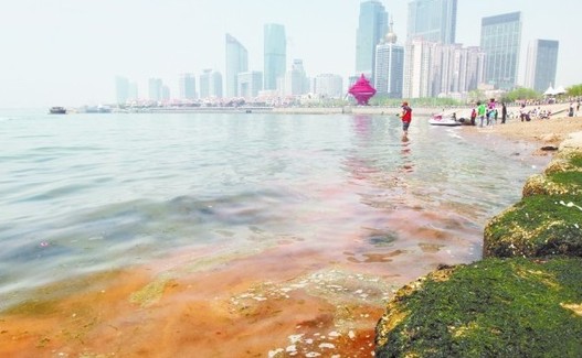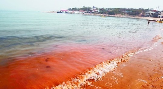 ![]() 5月4日,三浴岸邊的海水變紅了。