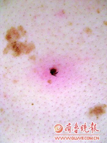 一只蜱蟲叮在皮膚上。(王德旭 供圖) ????隨著天氣升溫,越來越多的市民開始出門游玩,而蜱蟲也活躍起來。從2日至6日,青島市第八人民醫(yī)院皮膚科已經(jīng)接診了6位蜱蟲咬傷患者。 ????“醫(yī)生,快給我兒子看看,他身上怎么有兩個(gè)蟲子?!?日上午,市民李先生帶著7歲的兒子明明趕到了青島市第八人民醫(yī)院皮膚科。據(jù)李先生介紹,4日晚上孩子洗澡時(shí),他和妻子突然發(fā)現(xiàn)孩子肚子和左胸有兩個(gè)黑色的東西,“剛開始以為是黑痣,可是仔細(xì)一看居然是活的蟲子?!睋?dān)心不已的李先生沒敢給兒子取下身上的蟲子,5日一大早就帶著兒子到醫(yī)院就診。 ????接診的皮膚科主任王德旭介紹,經(jīng)過仔細(xì)觀察對(duì)比,確定明明身上的蟲子就是蜱蟲。隨后,王德旭將明明身上的蜱蟲取下,并給他用了藥,“如果被蜱蟲咬傷,蜱蟲所帶的病毒一般有兩周的潛伏期,因此還需要觀察隨訪兩周?!?/p> ????王德旭介紹,從5月2日到6日,已經(jīng)有6位市民被蜱蟲咬傷到醫(yī)院就診?!敖衲瓿霈F(xiàn)蜱蟲咬傷患者的時(shí)間比去年早了近20天?!蓖醯滦窠榻B,去年接診的首例蜱蟲咬傷患者是在5月21日,今年則提前到了5月2日,估計(jì)跟今年天氣比較熱、市民外出游玩比較早有關(guān)。 ????王德旭介紹,從接診的患者情況看,大部分患者都是外出游玩時(shí)被咬傷的,所以市民在外出游玩時(shí)一定要做好防范措施?!笆忻裢獬雠郎交蛴瓮鏁r(shí),盡量穿長(zhǎng)袖衣服,并扎好‘五口一腰’,也就是兩個(gè)袖口、兩個(gè)褲腿口、領(lǐng)口和腰部?!?/p> ????“還有一部分患者是被寵物身上的蜱蟲咬傷的?!蓖醯滦裾f,養(yǎng)寵物的市民要注意做好寵物的清潔工作,經(jīng)常給寵物洗澡,避免因?qū)櫸锷砩蠑y帶蜱蟲而遭到叮咬。 ????在王德旭的電腦里,保存著他接診的所有被蜱蟲咬傷患者的病例,并且保存有數(shù)十只蜱蟲的標(biāo)本?!氨或缦x咬傷后并非都會(huì)致病或死亡?!蓖醯滦窠榻B,去年醫(yī)院一共接診了118例蜱蟲咬傷患者,年齡從1歲到84歲,被咬傷的部位從頭頂、頸部、腰背、腹部到大腿、小腿、腳趾等?!敖?jīng)過對(duì)118位患者的隨訪觀察,無一人因蜱蟲叮咬致病?!蓖醯滦窠榻B,目前青島還沒有發(fā)現(xiàn)被蜱蟲咬傷后患病或者死亡的情況。(記者 董海蕊) |