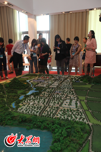 ?今天上午,科學(xué)發(fā)展新山東——“魯花杯”第八屆中國(guó)網(wǎng)絡(luò)媒體山東行采訪團(tuán)參觀曲阜片區(qū)大遺址保護(hù)展示沙盤。(盛堃 攝影)