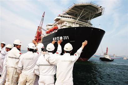 ????昨日下午,我國(guó)首艘3000米深水鋪管起重船“海洋石油201”從位于開(kāi)發(fā)區(qū)的青島海洋石油工程有限公司碼頭解纜起航,奔赴南海投入試鋪管作業(yè)和荔灣3-1氣田1500米深水鋪管施工作業(yè)。