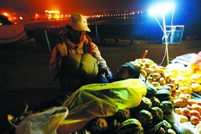 ????昨天晚上,棧橋上游客寥寥,郭淑霞的生意不好,兩個小時只賣出幾個香蕉。好不容易來了幾個游客想買香瓜,就在這時,一旁突然傳來良梁的哭聲,郭淑霞趕緊扔下生意跑了過去,原來良梁摔倒磕到了鼻子。郭淑霞使勁給孩子揉了揉鼻子說:“娃娃別哭,再賣幾個瓜咱就走……”