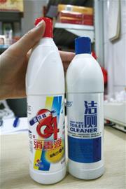 ????記者采訪了解到,日常生活中,清潔劑一般分三種,一是中性的清潔劑、洗滌劑等,對人傷害不大,如洗碗劑和果蔬劑;二是含氯或者次氯的堿性清潔劑,清毒液、漂白粉就是此類;三是酸性清潔劑,如浴室清潔劑、潔廁靈。黃永良老師表示,酸性清潔劑與堿性清潔劑混用便會生成有毒氣體——氯氣,大家一定要注意避免二者混用。(記者 錫復(fù)春)