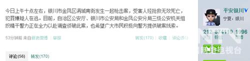 ????據(jù)銀川市公安局認(rèn)證微博發(fā)布的消息,目前,寧夏自治區(qū)公安廳、銀川市公安局和金鳳公安分局三級(jí)公安機(jī)關(guān)組織精干警力正在全力以赴調(diào)查偵破此案。希望廣大市民積極向警方提供破案線(xiàn)索。