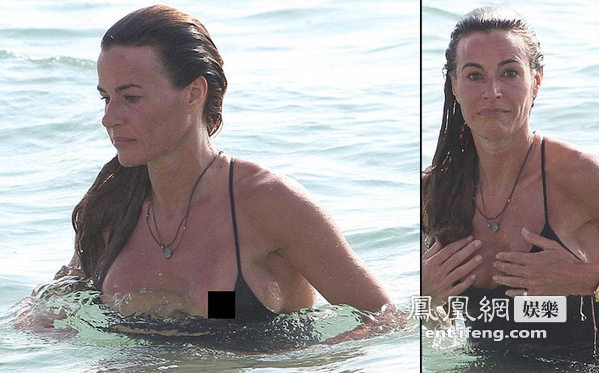 四十四歲超模Kelly Bensimon近日現(xiàn)身邁阿密海灘,游泳過程中不慎露點(diǎn),后才發(fā)現(xiàn)連忙遮住胸部。