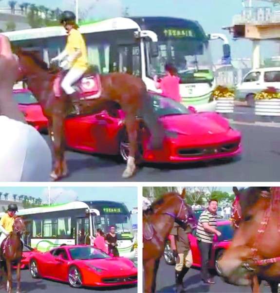 馬踢了法拉利,車主目瞪口呆