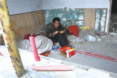????一名村民告訴記者,今年過春節(jié)時,這名流浪漢就來到了這里,當(dāng)時身上什么都沒有,村民看他可憐,給他送來了被褥和紅蠟燭,還有村民幫他把窗子封了起來擋風(fēng)。就這樣,流浪漢一住就是幾個月,因為他平時一句話也不說,村民無法幫他找家。平時只好拿來一些吃的給他充饑,這名流浪漢也很“勤快”,沒事時到處撿廢品換錢。