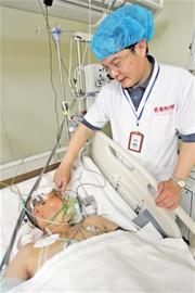????隨后,孫運(yùn)波來(lái)到病床前給于曰芳做檢查,他邊用手拍打著于曰芳的肩膀邊喊道:“能聽見嗎?睜睜眼!”記者看到,昏迷中的于曰芳竟然睜開了雙眼?!艾F(xiàn)在患者已經(jīng)對(duì)聲音有所反應(yīng)了,但還聽不懂話,無(wú)法做出思維判斷,目前是處于淺昏迷狀態(tài)。”孫運(yùn)波告訴記者,患者下周就可以轉(zhuǎn)入普通病房。