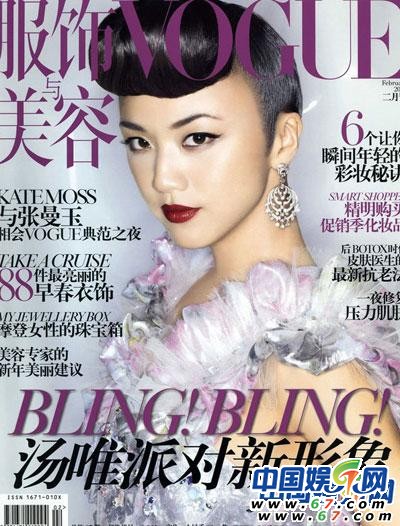湯唯獻(xiàn)藝雜志封面 白衣黑裙顯優(yōu)雅氣質(zhì)(組圖)