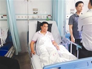 接報(bào)后,記者來(lái)到深圳市龍華人民醫(yī)院外三科30號(hào)病床,見(jiàn)到了受傷的王紅光。他一手打著點(diǎn)滴,一手連接著監(jiān)控儀器,鼻子上還插著吸氧管,臉上有多處擦破的痕跡。