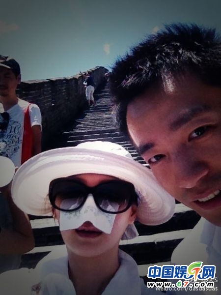 大S與汪小菲恩愛游長城 紙巾遮臉搞怪變京劇小丑(圖)