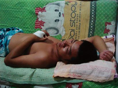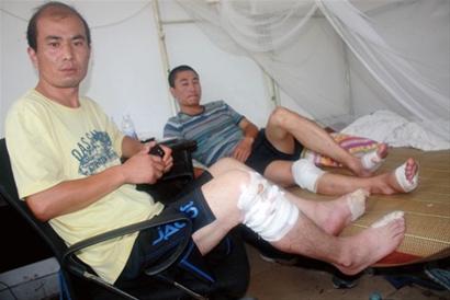 在廚師長牛明軍的帶領(lǐng)下,記者來到了于佳的休息室,記者看到他的右腳拇指根部被磨得不輕,右小腿肚上有大片血紅傷口,于佳的胳膊上、腿上和后背上,總共有7處外傷,纏滿大片紗布。