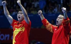 ????第三局比賽,王皓和張繼科很好的利用回球的線路牽制住了柳承敏最有威脅的正手。3-1領(lǐng)先后,眼看又要被中國(guó)隊(duì)連續(xù)漲分,劉南奎馬上叫了暫停希望讓柳承敏和吳尚垠穩(wěn)下節(jié)奏。這招暫停果然奏效,韓國(guó)隊(duì)連得3分,反而以4-3反超。在經(jīng)歷短暫的低潮后,王皓和張繼科的得分勢(shì)頭再度開(kāi)啟,5平之后,中國(guó)隊(duì)連得兩分,7-5領(lǐng)先兩分。之后張繼科的反手進(jìn)攻顯現(xiàn)出了巨大的殺傷力。10-6中國(guó)隊(duì)拿到了4個(gè)賽點(diǎn),之后王皓和張繼科沒(méi)有再給對(duì)手任何機(jī)會(huì),一個(gè)扣殺的得分11-6再下一局。這樣在拿到份量最重的男團(tuán)金牌后,中國(guó)隊(duì)也再次包攬了乒乓球項(xiàng)目的全部金牌,無(wú)愧夢(mèng)之隊(duì)的榮譽(yù)。