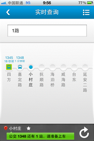 “換乘查詢”功能可幫助用戶獲得所在地和目的地之間可乘坐公交的線路信息,用戶輸入所在地和目的地,即可查詢到達目的地所需乘坐的車輛信息,以及車輛換乘的多種方案。版本更新后,將會陸續(xù)增加“線路查詢”、“站點查詢”、“擁擠程度”、“道路堵塞”等更多有價值的應用功能。