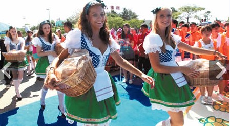 如今,酒娘也成了各個啤酒大篷的標(biāo)志性招牌,設(shè)計不同的造型,打扮出不同的風(fēng)格,令酒篷生香,讓酒客留戀。激情狂歡之夜,舉杯豪飲之時,酒娘就是一道風(fēng)情的“下酒菜”。