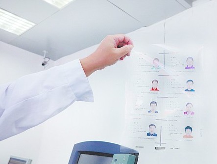????身份證制作需要經(jīng)過差不多十多道工序。工作人員將身份證上的照片、姓名、身份證號等信息,通過激光打印到一張?zhí)厥獾耐该髂ぐ嫔?,一張膜上?張身份證的信息。隨后,將制好的膜版與底板進行預(yù)定位。底板就是身份證上除去文字、照片的雛形,內(nèi)含芯片,膜版和底板都是公安部統(tǒng)一配發(fā)的。