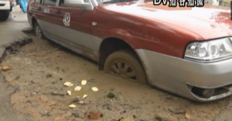 ????昨天晚上這一場(chǎng)突如其來的大雨,惹的事兒還真不少。出租車司機(jī)小馬被陷在泥坑里整整六個(gè)小時(shí)。凌晨開工的的哥小馬,4點(diǎn)左右頂著狂風(fēng)暴雨剛從火車站載客出來,走在滄臺(tái)路附近時(shí),整個(gè)車子陷進(jìn)了一個(gè)大坑里了。雨天路滑原本就不好走,又碰上這么大一個(gè)陷阱,看來今天這活是甭想干了。小馬趕緊幫車上的乘客另外打了一輛出租車,自己隨后又撥打了110,請(qǐng)民警來幫忙。拖車的繩子都斷了,自己的車還是絲毫不動(dòng),陷的還真