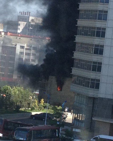 8月23日下午2點左右,大連高新園區(qū)一高層樓房著火。據(jù)目擊者稱,現(xiàn)場的火勢很大。截至下午3時20分左右,=明火基本已沒有,消防在一二樓使用水槍滅火,同時進入樓內高層滅火。