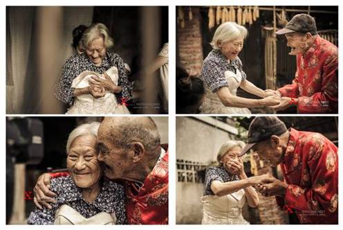 他們是仁壽人,大爺104歲,婆婆100歲,他們結(jié)婚81年卻從未有過一張照片!當為婆婆穿上婚紗后,大爺主動伸手抱婆婆,還喊著要去換衣服把自己打扮成小伙子,嘴里不停的說著老伴乖、漂亮。(via成都商報)