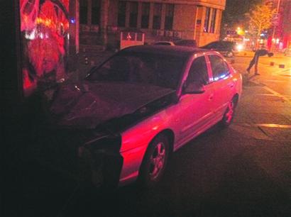 記者沿著地面上遺留的汽車機(jī)油,找到了遠(yuǎn)離現(xiàn)場(chǎng)將近50米的伊蘭特轎車,這輛轎車沖開(kāi)了兩個(gè)人行道旁的石樁,撞在百盛大廈的墻面上停了下來(lái)。這輛車的右側(cè)有大量劃痕,汽車的發(fā)動(dòng)機(jī)和音響都開(kāi)著,但是找不到司機(jī)。目擊了事故發(fā)生全過(guò)程的的哥李師傅告訴記者,這輛伊蘭特轎車是從曲阜路左拐進(jìn)入中山路的,由于車速太快,直接撞在了沿著中山路向北駛?cè)サ娜庠揭败嚿?,伊蘭特轎車原地打了一個(gè)轉(zhuǎn),調(diào)頭180°沖向了百盛大廈方向的人行道。 “那個(gè)司機(jī)撞了車之后又撞在石樁上,司機(jī)就打開(kāi)車門(mén)下了車,可是轎車自己還在往前跑,他手抓著方向盤(pán)被汽車又帶著跑了二十多米。 ”李師傅稱,這輛轎車應(yīng)該是自動(dòng)擋的,事故發(fā)生后司機(jī)沒(méi)有摘擋就下了車,所以汽車一直在行駛狀態(tài)中。