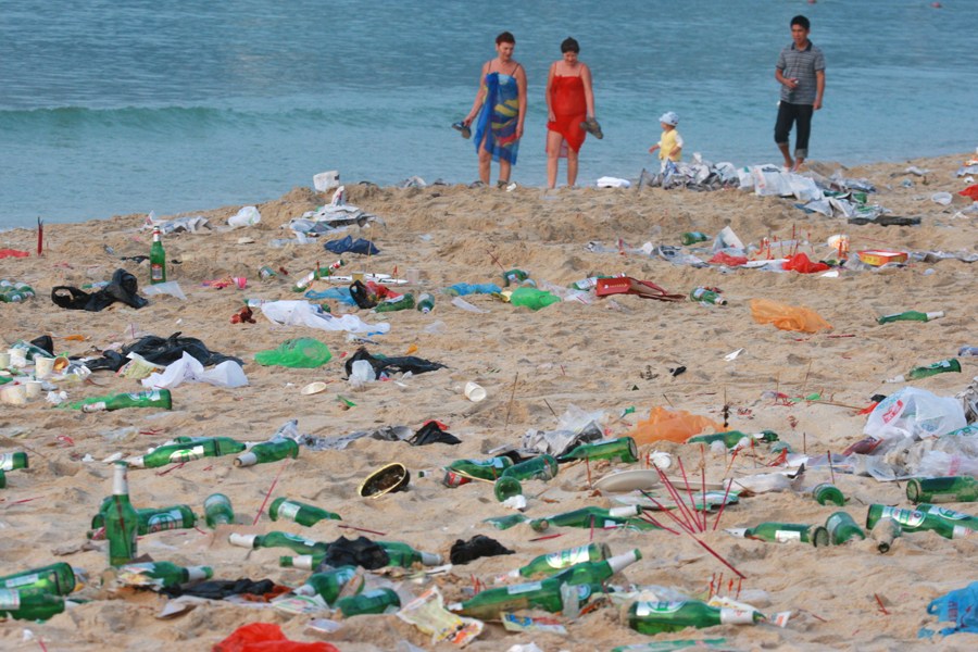 10月1日早晨,中秋夜過后,海南三亞大東海景區(qū)長(zhǎng)達(dá)2.8公里的海岸線長(zhǎng),遍布50噸生活垃圾,這些垃圾均是昨夜市民及游客賞月留下的,嚴(yán)重的污染了海洋環(huán)境。