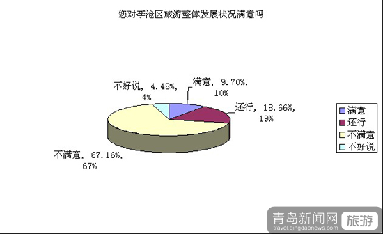 在李滄區(qū)旅游滿意度調(diào)查中,近七成的網(wǎng)友對(duì)李滄區(qū)旅游整體發(fā)展?fàn)顩r表示失望,高達(dá)59.70%的網(wǎng)友對(duì)李滄區(qū)景區(qū)管理建設(shè)方面表示不滿意,“逛過(guò)李滄之后,您還會(huì)帶朋友來(lái)李滄休閑游玩嗎?”的選項(xiàng)中僅有19.40%的網(wǎng)友表示還會(huì)再來(lái)。