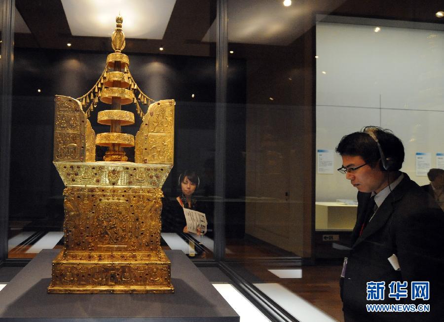 10月9日,在日本東京國立博物館舉行的《中國王朝至寶展》媒體預展上,觀眾觀看北宋阿育王塔。當日,《中國王朝至寶展》在日本東京國立博物館舉行媒體預覽會。定于10月10日至12月24日向公眾開放的這次展覽由日本東京國立博物館和中國文物交流中心共同主辦,將向公眾集中展示中國夏朝到北宋王朝時期的168件文物,其中60%的展品屬于國家一級文物。為配合這次展覽,日本NHK電視臺還將播放由日本著名電影