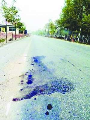 案發(fā)現(xiàn)場距離保阜高速曲陽靈山出口大概3公里,路邊一條半米多寬,兩米多長的血跡依然非常清晰。