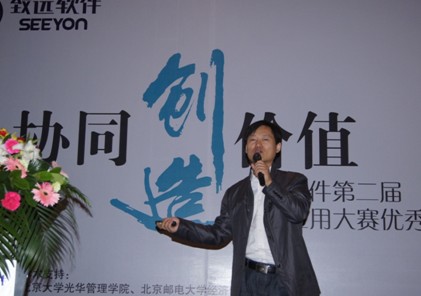 ![]() 百萬用戶話協(xié)同——致遠(yuǎn)軟件第二屆協(xié)同應(yīng)用大賽頒獎儀式 ????精彩的協(xié)同應(yīng)用展示是此次會議的高潮,獲得“百萬用戶話協(xié)同——致遠(yuǎn)軟件第二屆協(xié)同應(yīng)用大賽——最佳管理應(yīng)用獎”的企業(yè)華泰集團(tuán)CIO 徐守福先生向在場來賓分享了協(xié)同應(yīng)用的經(jīng)驗(yàn)和OA選購建議。演講中,徐總介紹了了華泰集團(tuán)戰(zhàn)略組織架構(gòu)與OA選型要素,就協(xié)同應(yīng)用價(jià)值與案例向嘉賓們做了詳細(xì)解說, 現(xiàn)場氣氛熱烈,微博大屏幕上頻頻出現(xiàn)嘉賓們的贊美之聲,紛紛對徐總的演講表示由衷的贊嘆和肯定。
