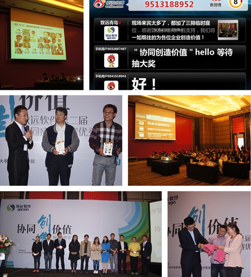 ![]() 致遠(yuǎn)軟件協(xié)同研究院張?zhí)飾髋筷U述“協(xié)同創(chuàng)造價(jià)值” ????接下來,最激動人心的時(shí)刻“百萬用戶話協(xié)同——致遠(yuǎn)軟件第二屆協(xié)同應(yīng)用大賽頒獎儀式”正式揭幕,青島區(qū)十余家客戶獲獎。全球最大新聞紙生產(chǎn)基地——華泰集團(tuán)獲得“最佳應(yīng)用管理獎”,青島區(qū)域最大汽車銷售運(yùn)營商——福日集團(tuán)獲得最佳業(yè)務(wù)實(shí)踐獎,此外,山東世紀(jì)泰華集團(tuán)有限公司、青島和金投資發(fā)展股份有限公司、青島正大有限公司、青島中德生態(tài)園發(fā)展有限公司、山東佳士博食品有限公司、青島鑫源置業(yè)集團(tuán)有限公司 、永新華控有限公司、中糧黃海糧油工業(yè)有限公司 、山東晨鴻傳媒集團(tuán)、青島華仁太醫(yī)藥業(yè)有限公司等10家協(xié)同應(yīng)用企業(yè)獲得優(yōu)秀應(yīng)用入圍獎。