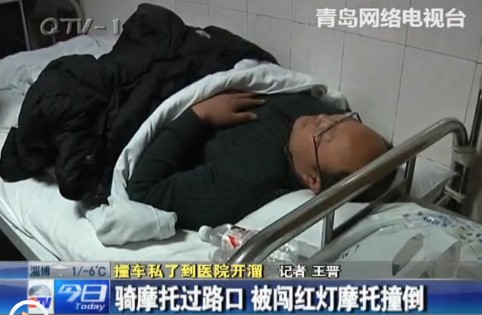 遭遇車(chē)禍被撞,就夠窩心的了,然而更讓人窩心的是,這肇事者把傷者送到醫(yī)院后竟然腳底抹油,溜了。即墨市民尹先生昨天就碰到了這么個(gè)不地道的司機(jī)。昨天下午四點(diǎn),記者在即墨市人民醫(yī)院的病房里見(jiàn)到了受傷的尹先生。尹先生告訴記者,事情發(fā)生在中午他下班的時(shí)候,當(dāng)時(shí)綠燈亮起,他騎著摩托車(chē)過(guò)馬路,卻被一輛闖紅燈的摩托車(chē)撞倒了。出事后,當(dāng)事人雙方的家人也很快趕到了現(xiàn)場(chǎng),尹先生家人也報(bào)了警,當(dāng)著交警的面,雙方都簽