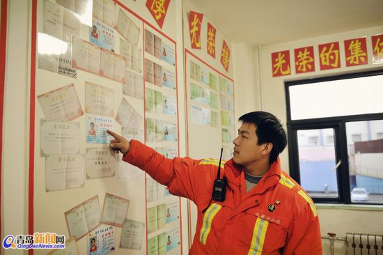 在機械二隊榮譽室里,賈自剛指著自己滿墻的榮譽證書,非常自豪