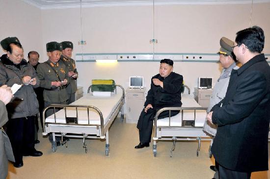當(dāng)?shù)貢r(shí)間2013年1月20日,朝中社提供的照片顯示,朝鮮最高領(lǐng)導(dǎo)人金正恩19日視察朝鮮人民軍在建的平壤大城山綜合醫(yī)院。