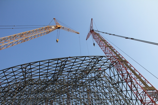 青島新聞網(wǎng)1月23日訊 當(dāng)最后一塊鋼結(jié)構(gòu)填補(bǔ)了空缺位置,全亞洲最大的鋼結(jié)構(gòu)植物館之一——青島世園會植物館,昨日終于封頂大吉。龐大的鋼結(jié)構(gòu)呈現(xiàn)出曲線流暢的立體葉片造型,玻璃幕墻安裝工作正在有序進(jìn)行當(dāng)中。2013年5月底,整個(gè)植物館將披上由15000多塊超白鋼化玻璃組成的閃亮外殼,9月整個(gè)植物館將全面竣工,以最佳姿態(tài)迎接試運(yùn)營檢驗(yàn)和游客的光臨。