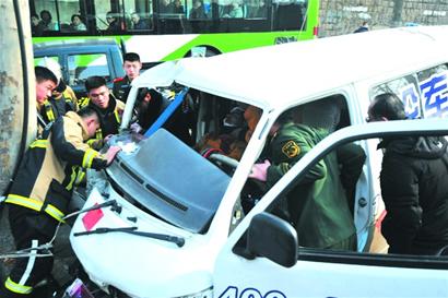 面包車從坡頂疾馳沖下,司機一時無法將車剎住,他害怕撞上其他車輛,下意識地向左打方向盤躲避,失控的車輛撞上路邊的法國梧桐樹,坐在副駕駛座位上的男青年頭部受傷,右腳被扭曲變形的車身擠住。昨天上午11時40分左右,紹興路與敦化路口北100米處發(fā)生車禍,119消防隊員用了40多分鐘才將被困男青年救出,緊急送往醫(yī)院搶救。此時這名男青年因為流血過多已經(jīng)昏迷不醒。