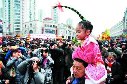 ????記者來(lái)到昌樂(lè)路文化街的蘿卜元宵糖球會(huì)會(huì)場(chǎng)看到,會(huì)場(chǎng)周邊的各條道路上已經(jīng)擠滿前來(lái)趕會(huì)的市民。整條昌樂(lè)路文化街成為民俗觀賞區(qū),來(lái)自花燈之鄉(xiāng)的自貢吉祥花燈,排成200多米的花燈長(zhǎng)龍,吸引了眾多市民在花燈前拍照留念。沾化路和濱縣路等周邊道路則聚集了蘿卜、糖球和各種小吃攤點(diǎn),各種美味讓這幾條街道人山人海,一些帶著孩子來(lái)逛會(huì)的市民只得把孩子扛上肩頭。而這些打扮入時(shí)的小朋友立刻成為眾多攝影愛(ài)好者的拍攝目標(biāo),連同商家叫賣的各種展示,讓會(huì)場(chǎng)成為各種“秀場(chǎng)”。