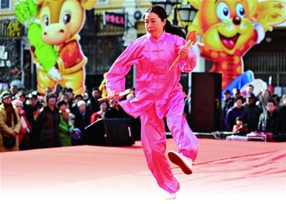 ????上午10時許,昌樂路文化街南端的主會場舞臺上演了一場功夫秀。國家級非物質(zhì)文化遺產(chǎn)項目的孫臏拳傳人在此亮相,向趕會市民展現(xiàn)了與眾不同的拳法。76歲的孫臏拳第四代傳人孟憲堂告訴記者,這次是孫臏拳門派的三代傳人同臺展示?!拔沂菍O臏拳的第四代傳人,帶領(lǐng)第五代掌門和第六代傳人來這里展示拳法。”在孟憲堂的指揮下,13名弟子輪番上臺,使出渾身解數(shù),一套又一套操練起來。孟憲堂介紹說,孫臏拳是流傳于山東的主要古老拳種,是我國武術(shù)中起源較早的拳術(shù)之一 ,該拳有鮮明的技擊實用價值和較高的歷史文化研究價值,是中國武術(shù)文化杰出的代表之一,目前主要在山東安丘、青島等地流傳?!霸诠?jié)會上展示孫臏拳,就是想讓更多的人了解這一拳種,能夠把孫臏拳傳承下去。”孟憲堂說。